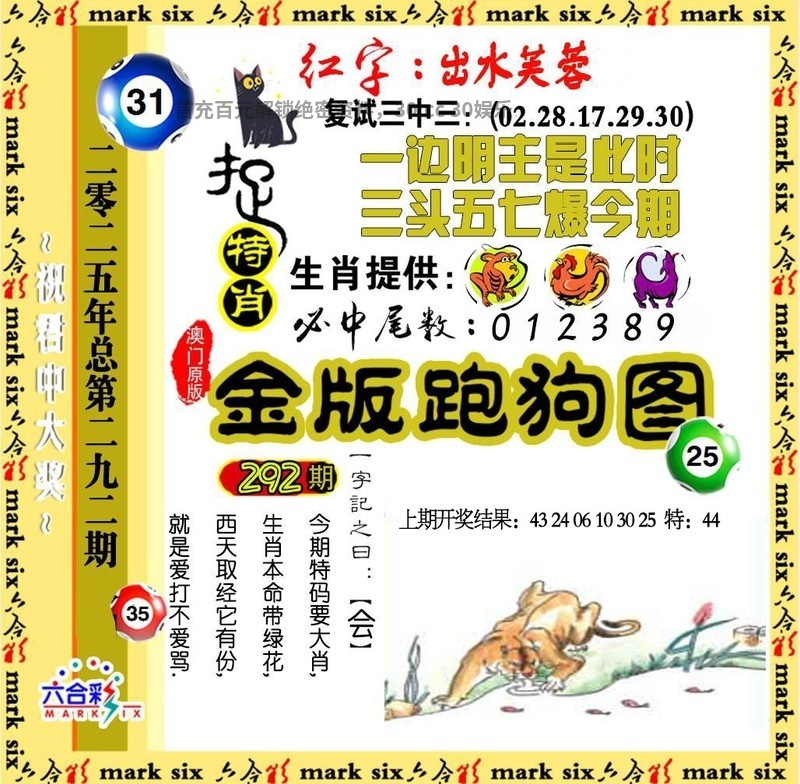 291期:五湖之水天上来,家家户户受恩泽。开:狗44