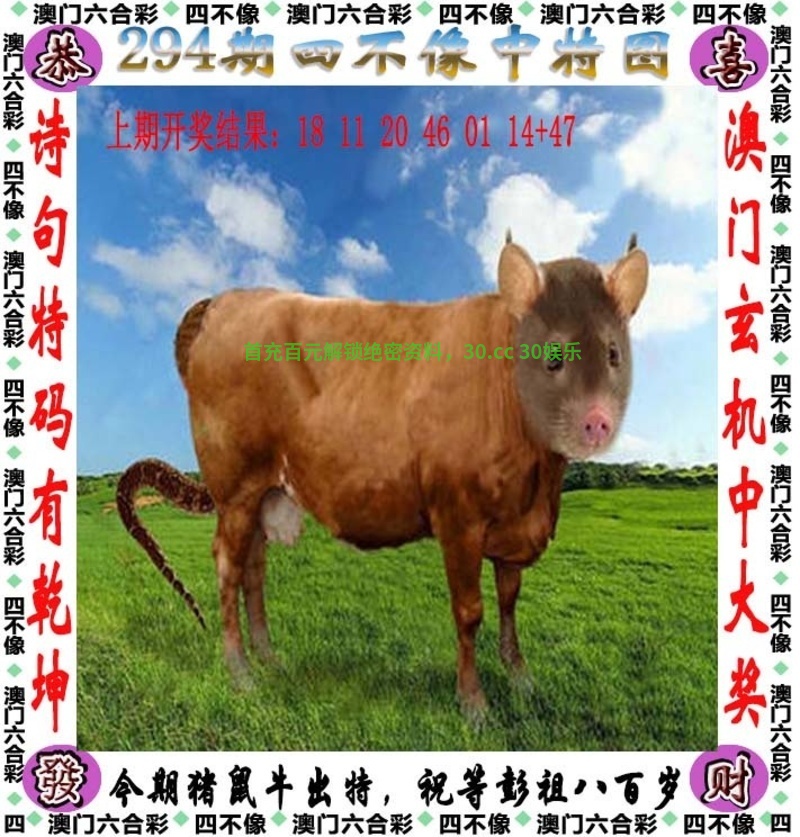 294期:今期猪鼠牛出特,祝等彭祖八百岁【开:鼠18】